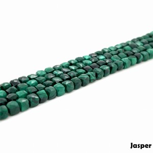 Malachit kostka fasetowana 4,5 mm, długość sznurka 40 cm