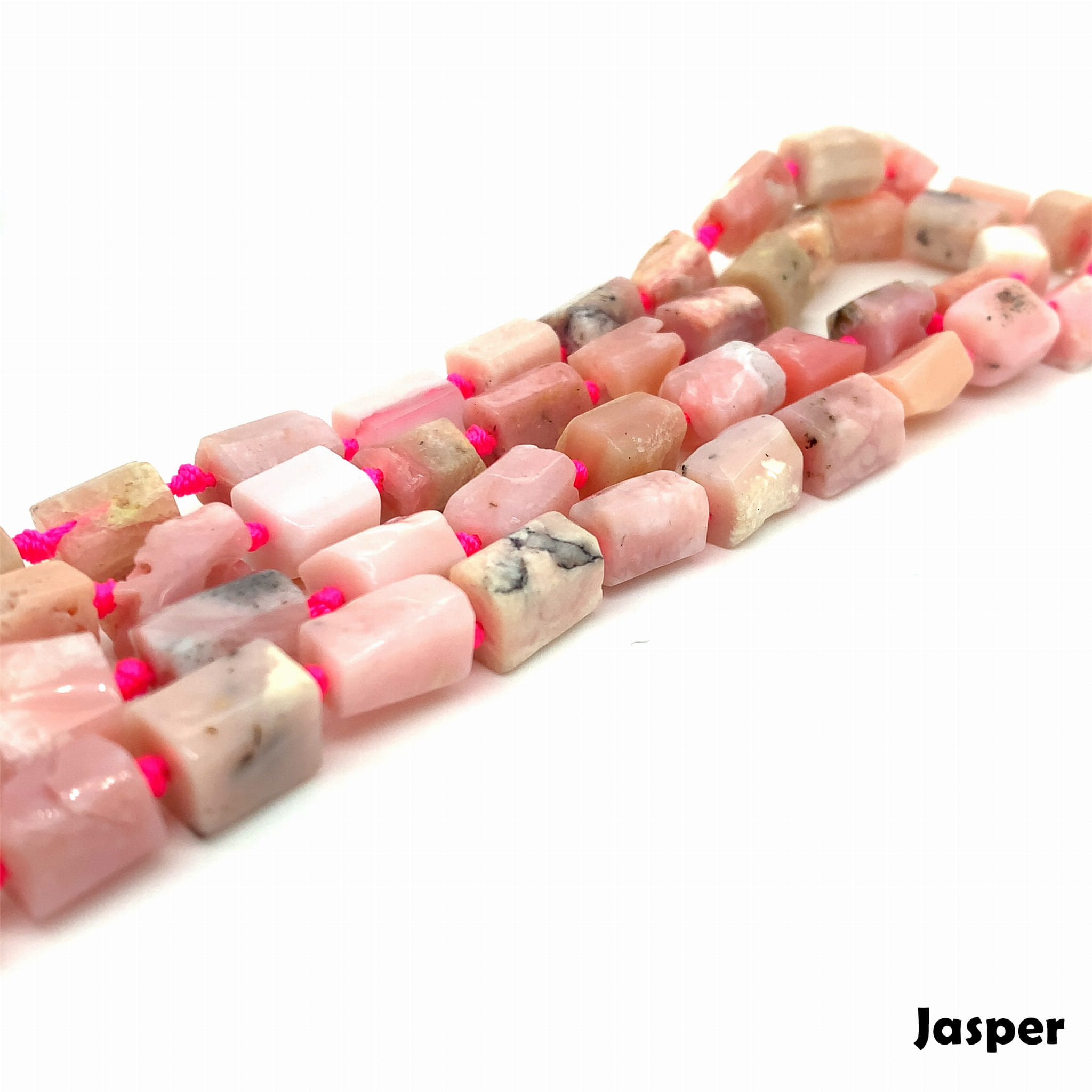 Opal różowy wałek nieregularny około 12x8 mm, długość sznurka 40 cm